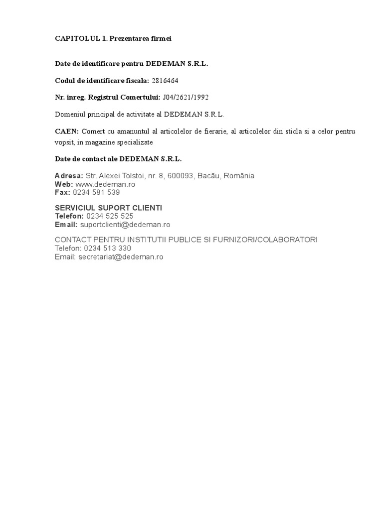Organizarea Si Functionarea Sc Dedeman Srl 34m75o3wzo46